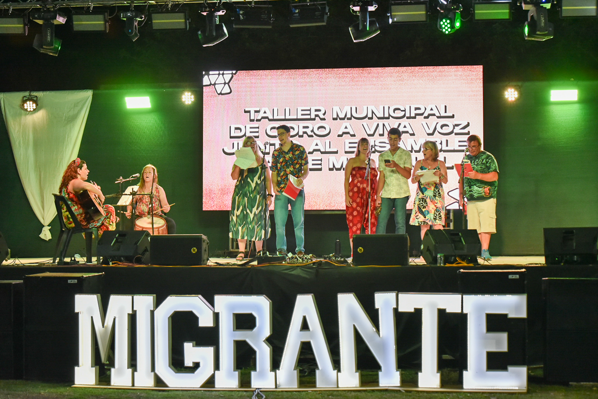 El escenario abrió con el Taller Municipal de Coro A Viva Voz de Villa Urquiza, acompañado por el Ensamble Sauce Montrull.