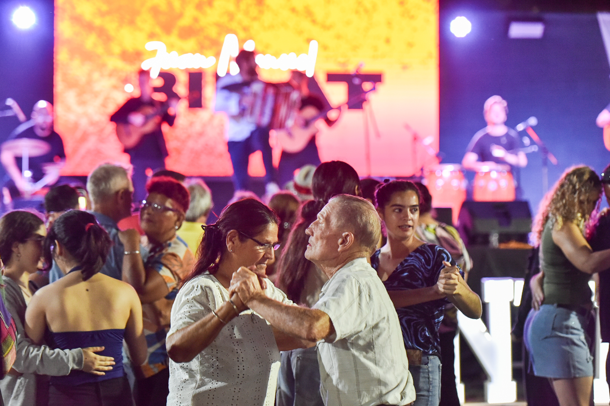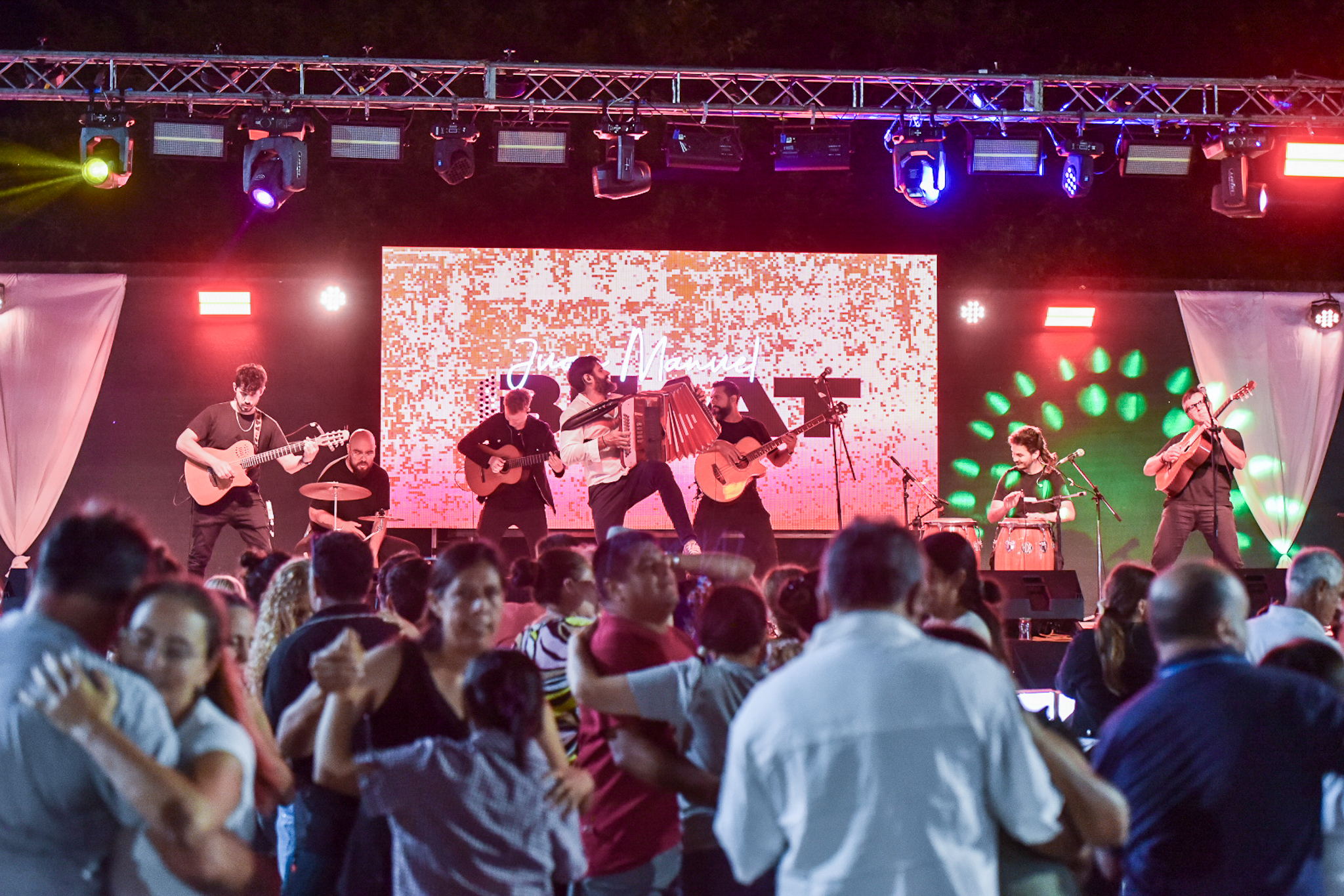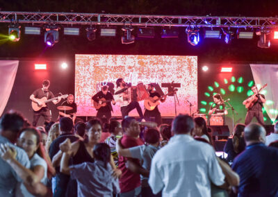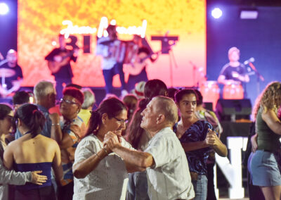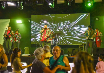 Uno de los momentos más esperados de la noche llegó con el acordeonista local Juan Manuel Bilat, quien con su característico show reunió a una multitud frente al escenario para bailar chamamé.