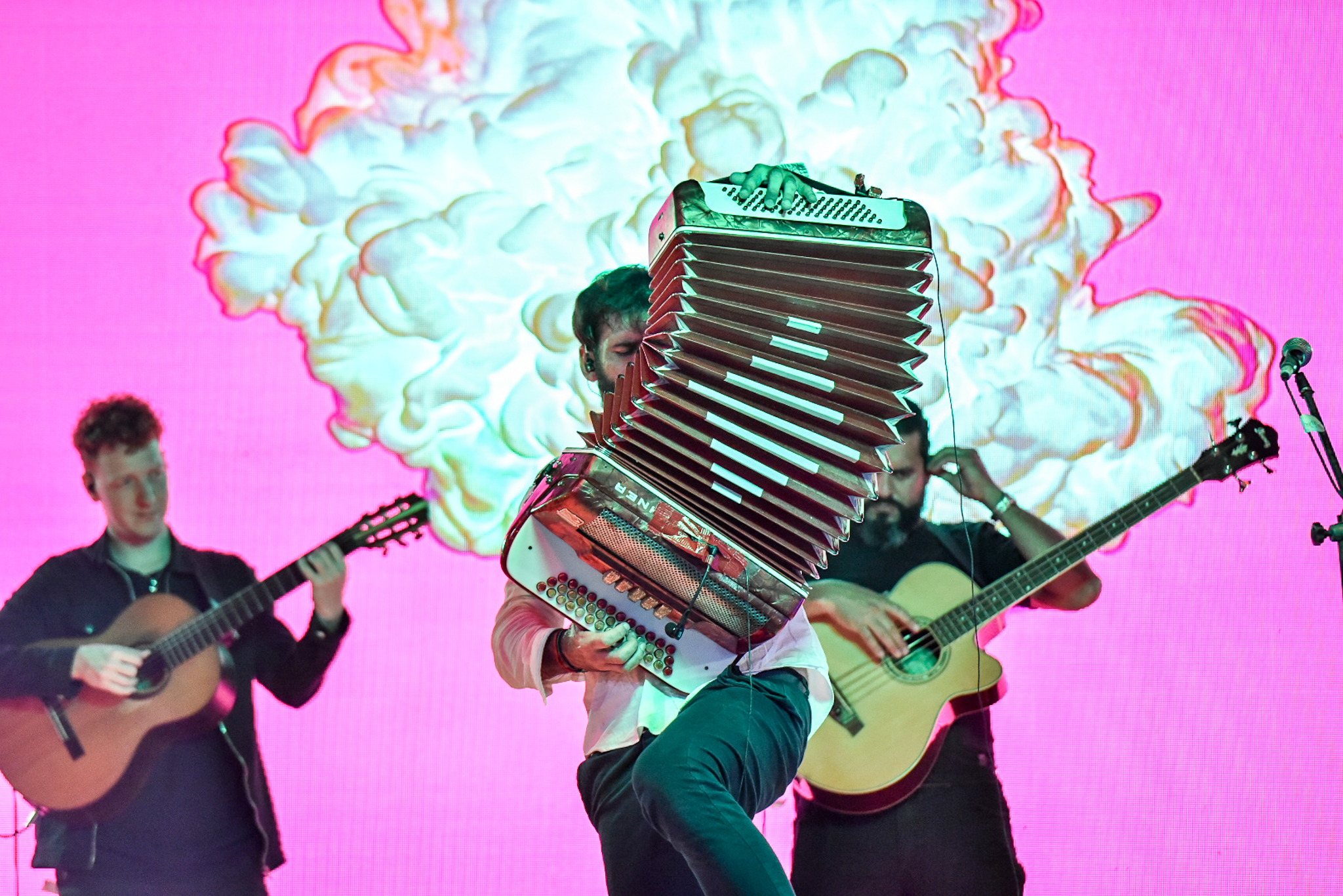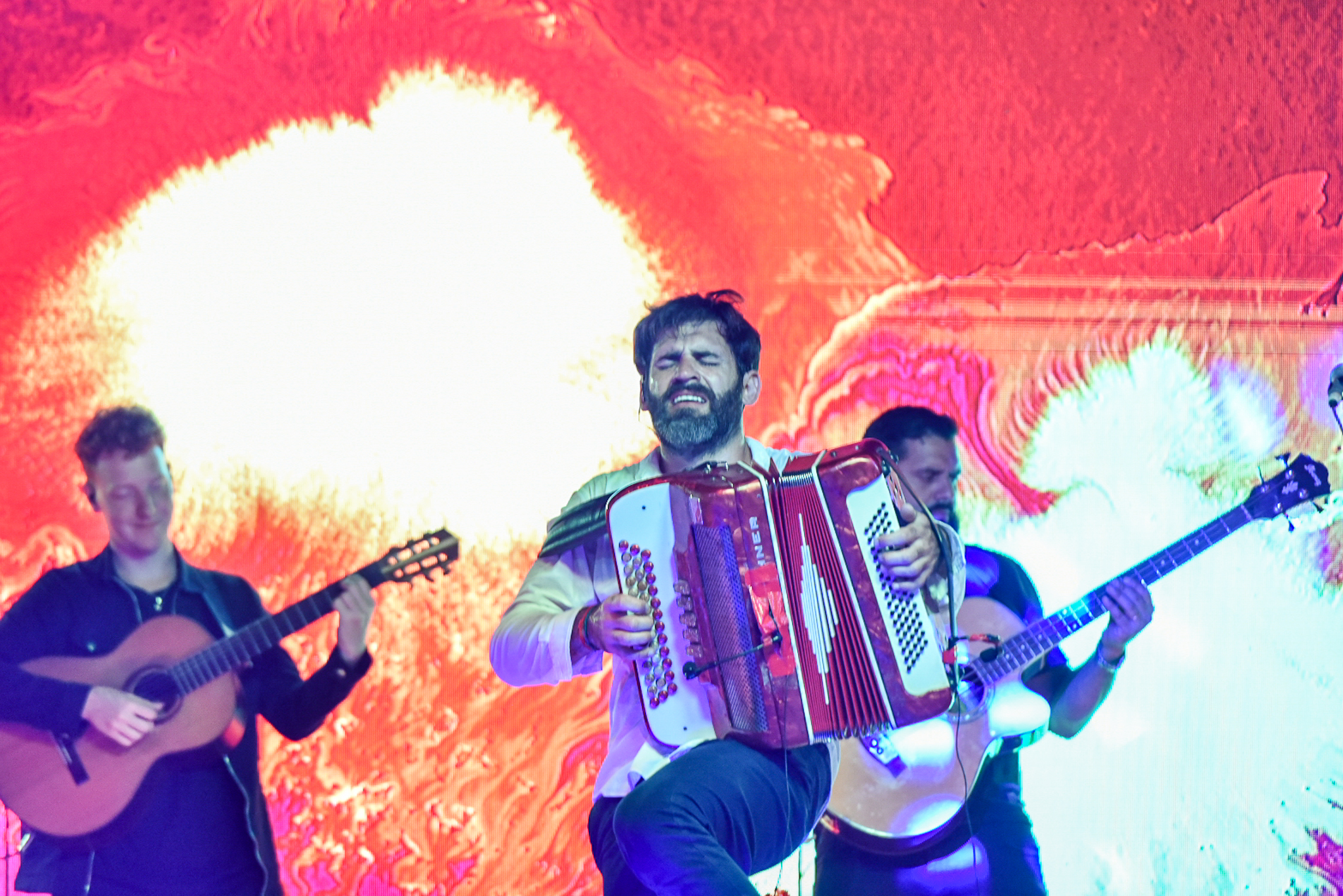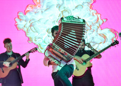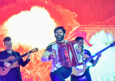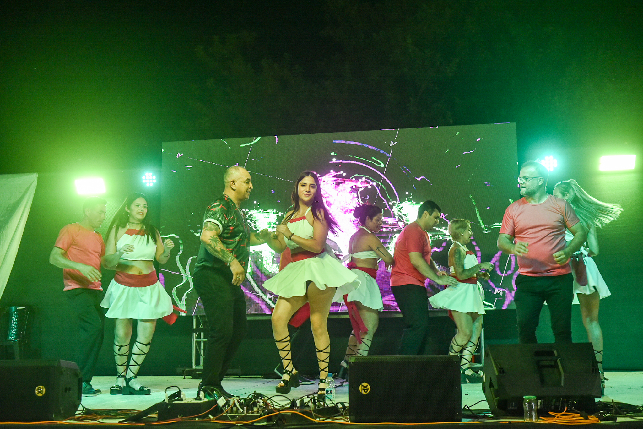 Uno de los momentos más esperados de la noche llegó con el acordeonista local Juan Manuel Bilat, quien con su característico show reunió a una multitud frente al escenario para bailar chamamé.