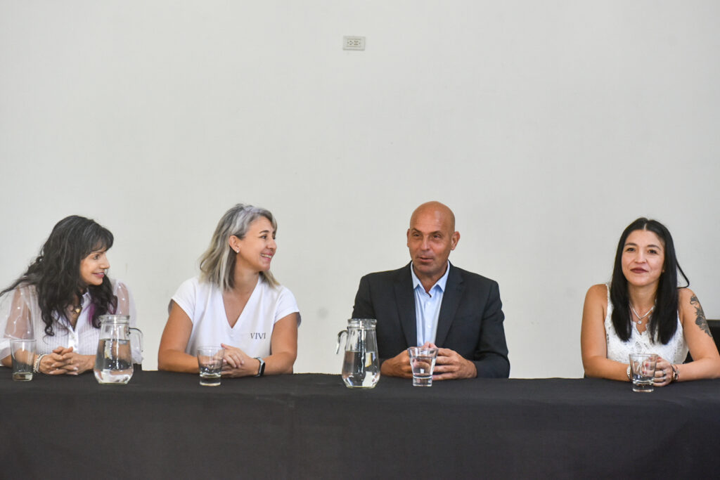 El intendente Ariel Weiss junto a la responsable del área de empleo y emprendedurismo Ximena Sola y las organizadoras del desfile Alejandra Suárez y Viviana Marín durante la rueda de prensa realizada este martes.